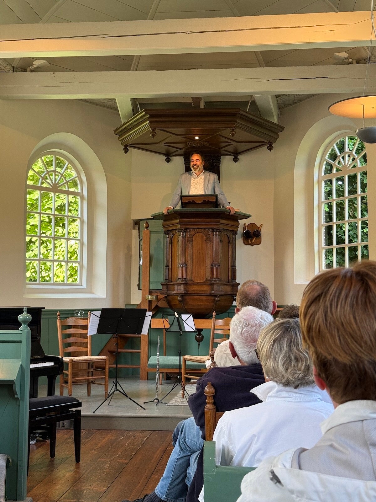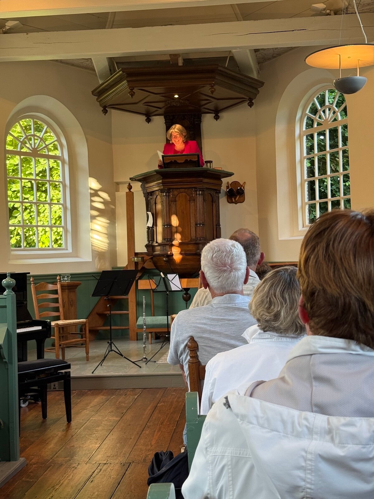 Taspraken en muzyk yn it tsjerkje fan Sanfurd en neisit op camping Sanfurd.